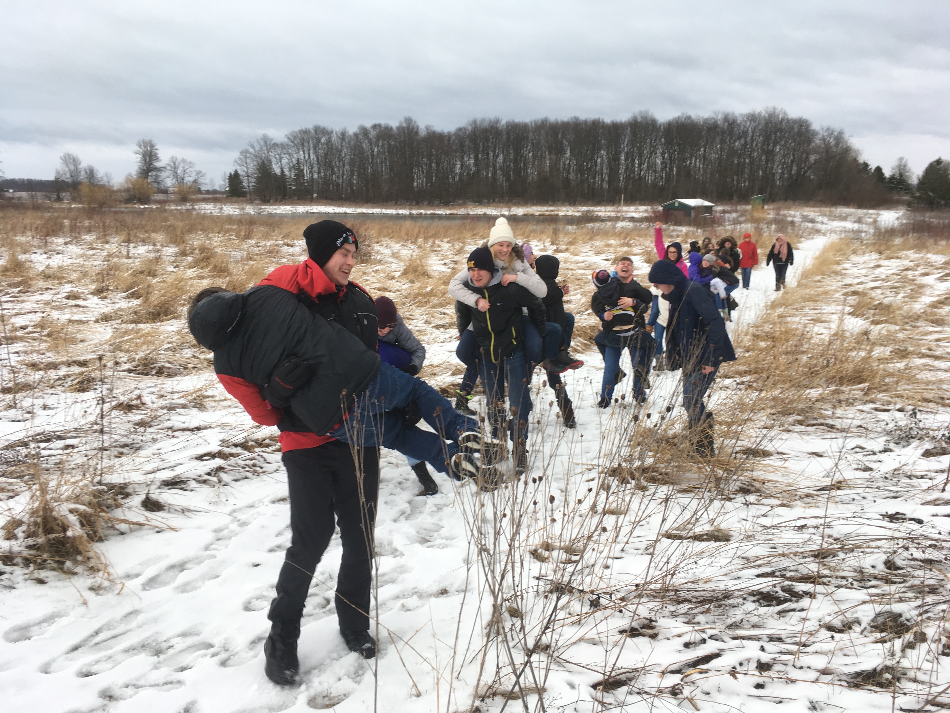 This past week, Laudato Si’ Project helped put on the St. Dominic middle school retreat, as well as, a stewardship work day on the Schoofs Preserve for St. Theresa of Calcutta young adults group. For the stewardship work day, chilly temperatures were no barrier for this group. The Schoofs Preserve is a 51-acre preserve owned by the Ozaukee Washington Land Trust and our group was focused on removing invasive species like buckthorn and honeysuckle from around the pond to allow regeneration of native species like red-twig dogwood and elderberry. Thanks to all the young adults from Theresa of Calcutta for their hard work!