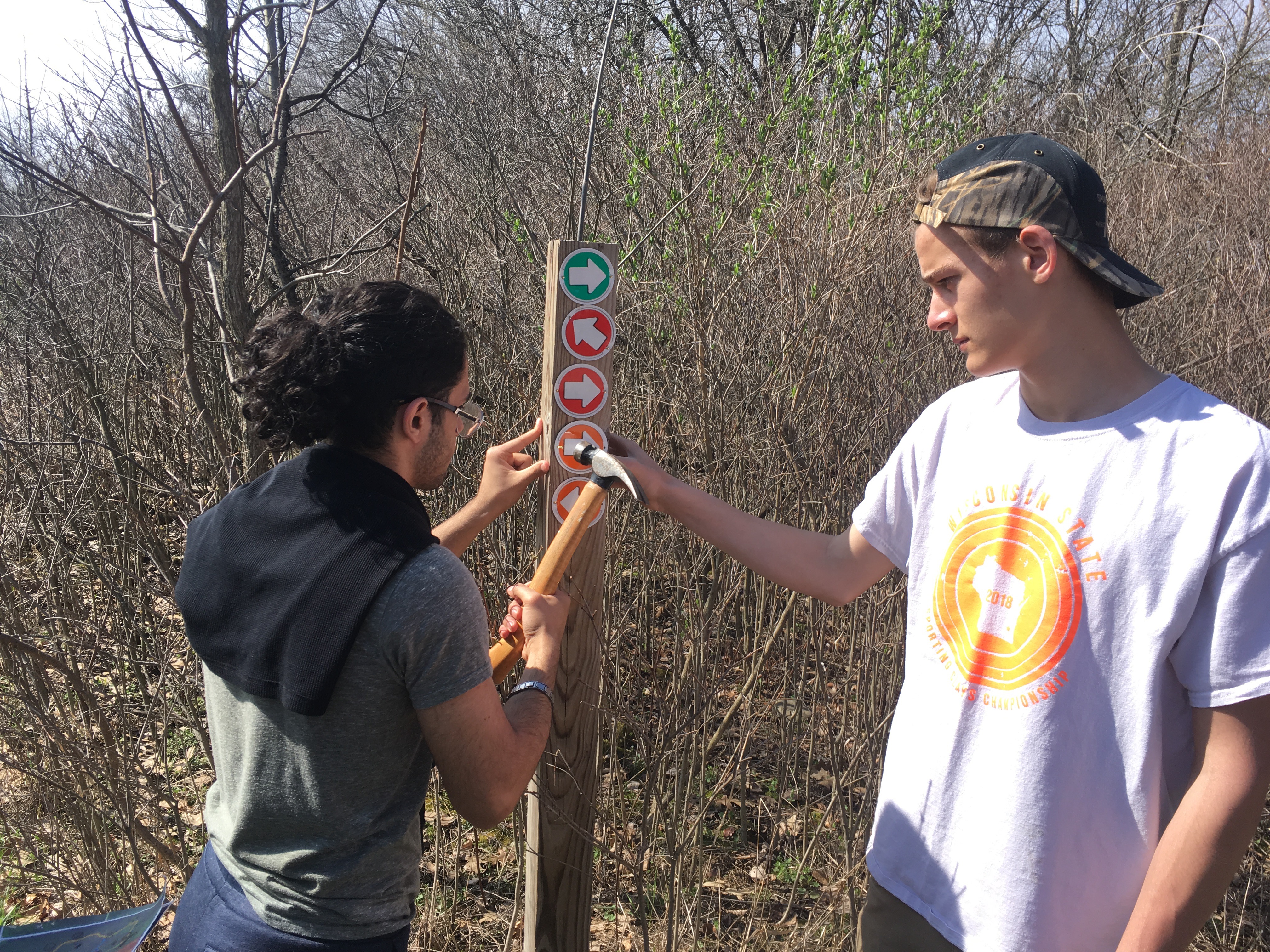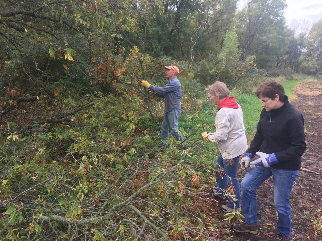 After seeding the prairie, we headed across the property to our woodland restoration site. It was here that we continued maintenance on our nature trail and continued with invasive species removal. See our post from an Eagle Scout who made this site his project