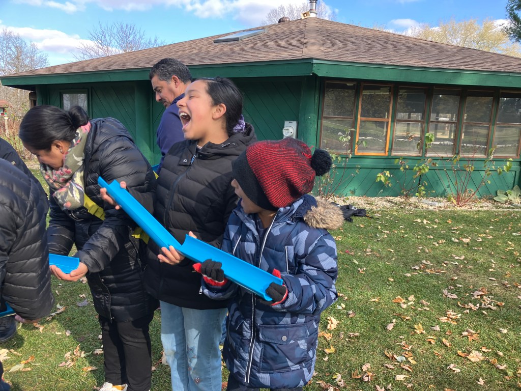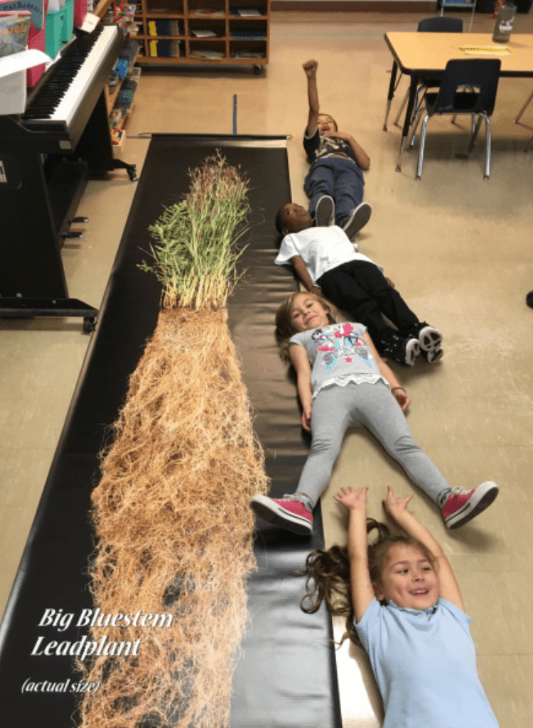 We had an incredible afternoon Friday planting a butterfly garden at Milwaukee Parkside School for the Arts. We started by doing an educational program with the K-5 students about prairie, what factors shape it, and why it is important. We discussed the role of fire in shaping this unique ecosystem, as well as, how bison and elk in WI also shaped the landscape. Students were able to feel the hides of those animals and even try on an elk antler. We also looked at the amazing roots of prairie that can go as deep as 15 feet! This helps prairies survive and benefit from wildfires and also help the plants during droughts. Students were able to lie next to a banner showing the actual size of big bluestem and lead plant roots. We talked about WI butterflies and pollinators that will benefit from the prairie planting.