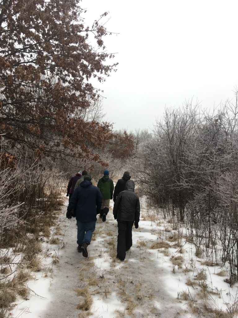 The afternoon activity included a reflective group walk up to our woodland restoration site. Students helped with our ongoing project by removing and stacking invasive buckthorn trees. The amount of work that 34 motivated 7th graders can do is truly amazing. Temperatures in the high 40’s didn’t seem to negatively impact this group at all. We finished the afternoon by hiking a trail that loops much of the beautiful retreat center property.