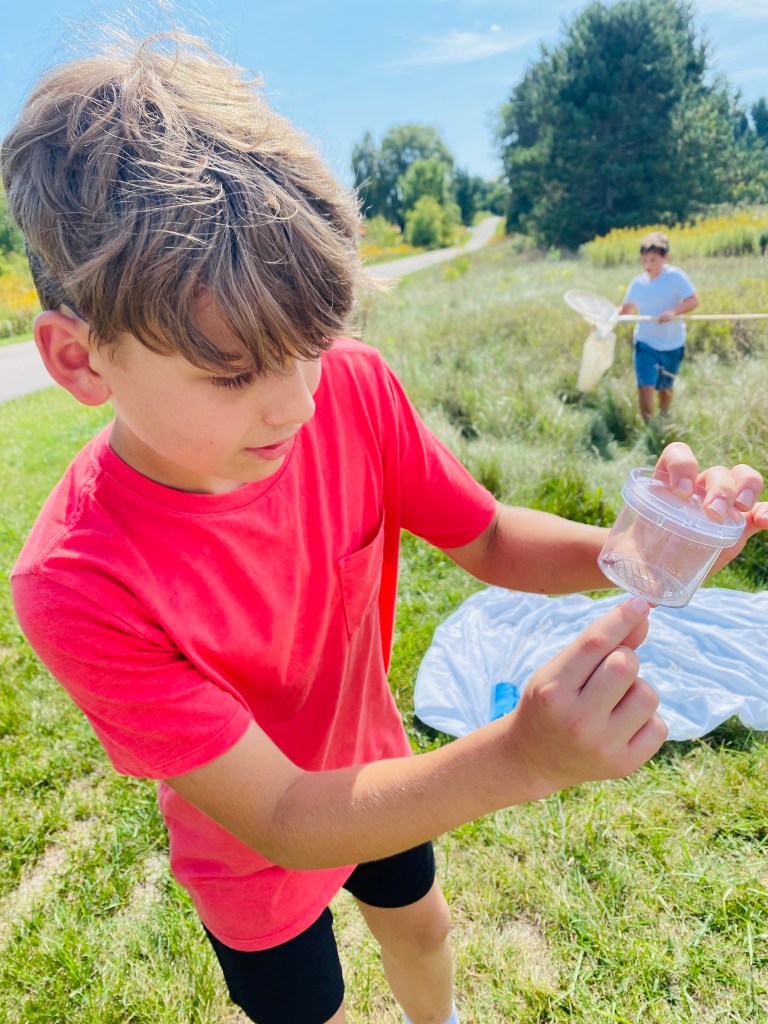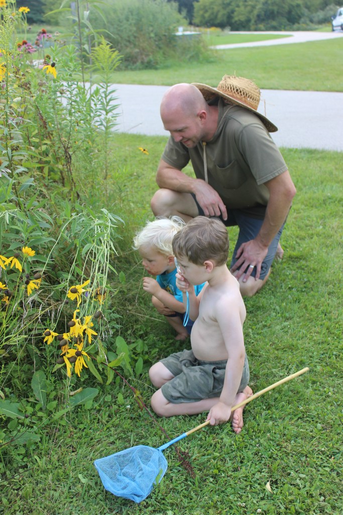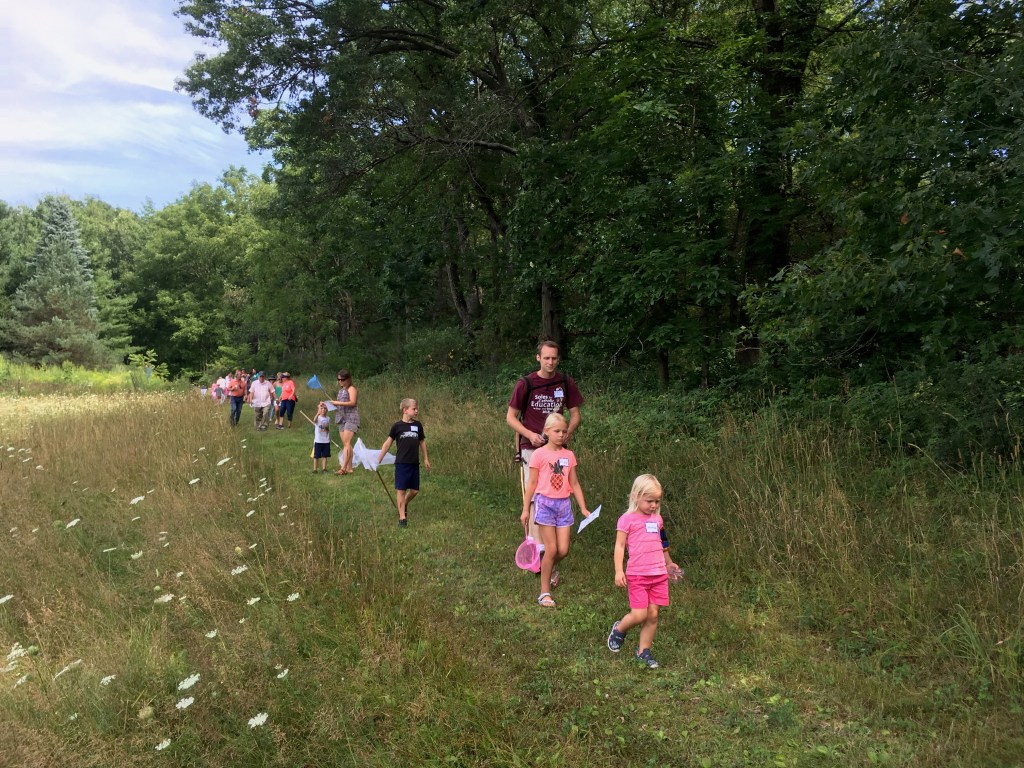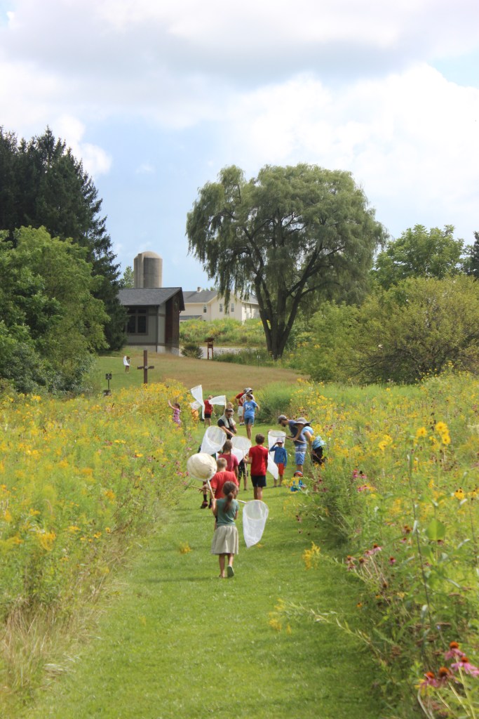 On another part of the property, the Milwaukee Public Museum hosted insect catching by the butterfly garden where swallowtails, monarchs, and a whole host of insects were examined amidst the gorgeous wildflowers of our native prairie!