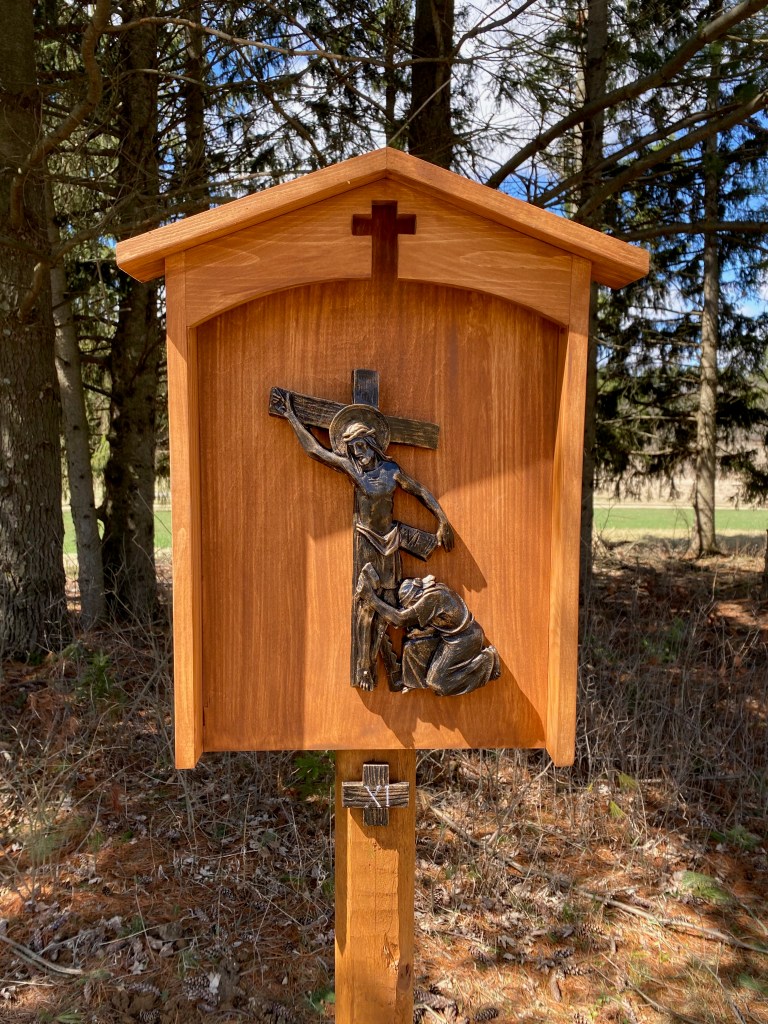 The Catholic Ecology Center is a space for encountering Christ- in the sacraments, in the beauty of the land, in the goodness of the people who visit, and in the works of art that are around us. If you haven’t already, come and enrich your heart and mind with the wonderful art pieces that are found at the CEC! From our new stone triptych, Ex Nihilio, to the wonderful works present in our member art show, to the land around us, we are blessed to be so steeped in beauty and have countless reminders of our loving God!