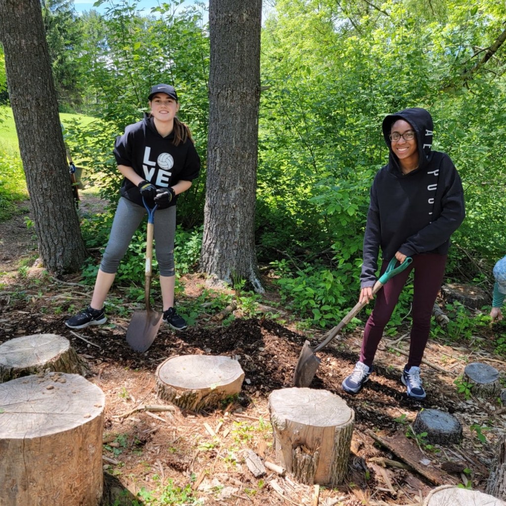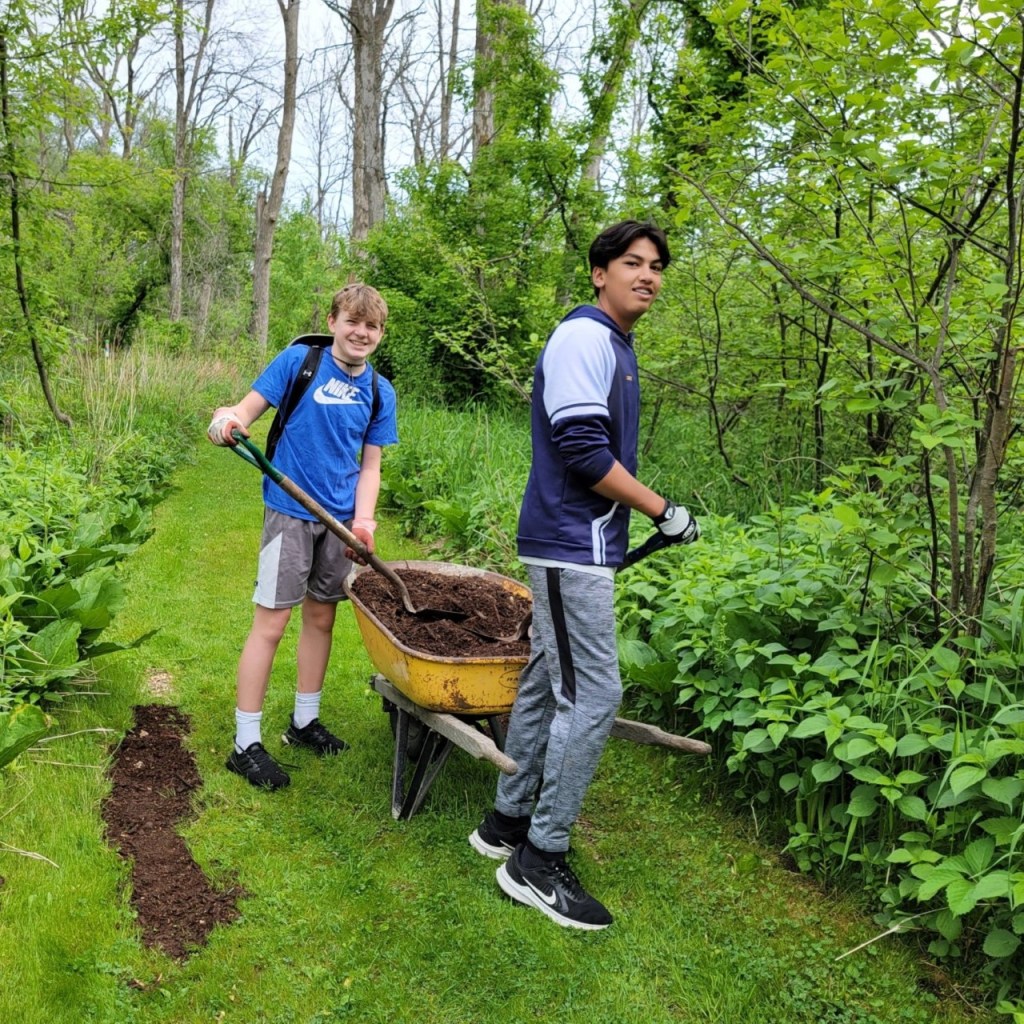 MUHS students helping mulch the nature trail