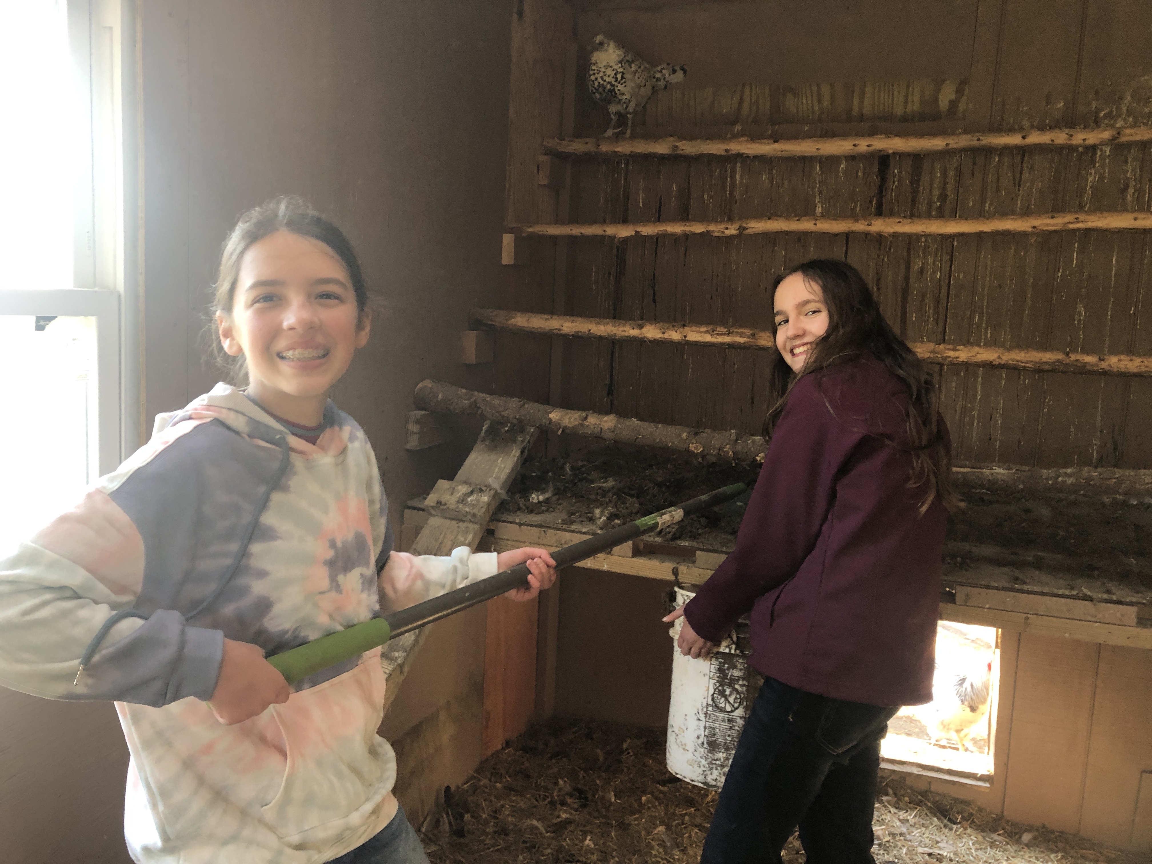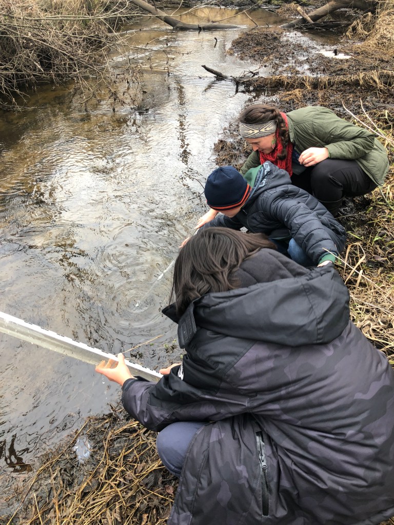 We harvested sap just earlier this week with our Faith Journeys students, and they did a great job! After walking out to the silver maple by the Ecology Yurt, we looked for a spot to tap: fairly low to the ground while not on the same vertical line as previous years taps and hopefully under a branch where there would naturally be good sap flow. We found a spot and used a power drill to make a hole at a slight upward angle, encouraging the flow down through the spile. WHiiiirrr! The students giggled as small curls of sawdust burst out from the drill bit! After that it didn’t take long! Gasps filled the air as sap started to trickle and dribble out of our new hole. We quickly put a spile, a tapered conical spout, into the hole to help funnel the sap into the desired holding container. Students had a great time using the rubber mallet to pound the spile until it was secured snugly in place. After that, we connected the spile to the collection bucket either through hooking the metal bucket directly below the spile, or by threading a small hose from the spile into a bucket that rests on the ground. Finally, the students helped secure lids on the buckets. We aren’t the only ones who like sap! The lids not only keep out debris that could naturally fall into the bucket, but it also keeps out critters like squirrels and bugs who wouldn’t mind helping themselves to the sweet treat! Then it’s time to be patient as the trees drip and drop and spill their sap into the buckets!