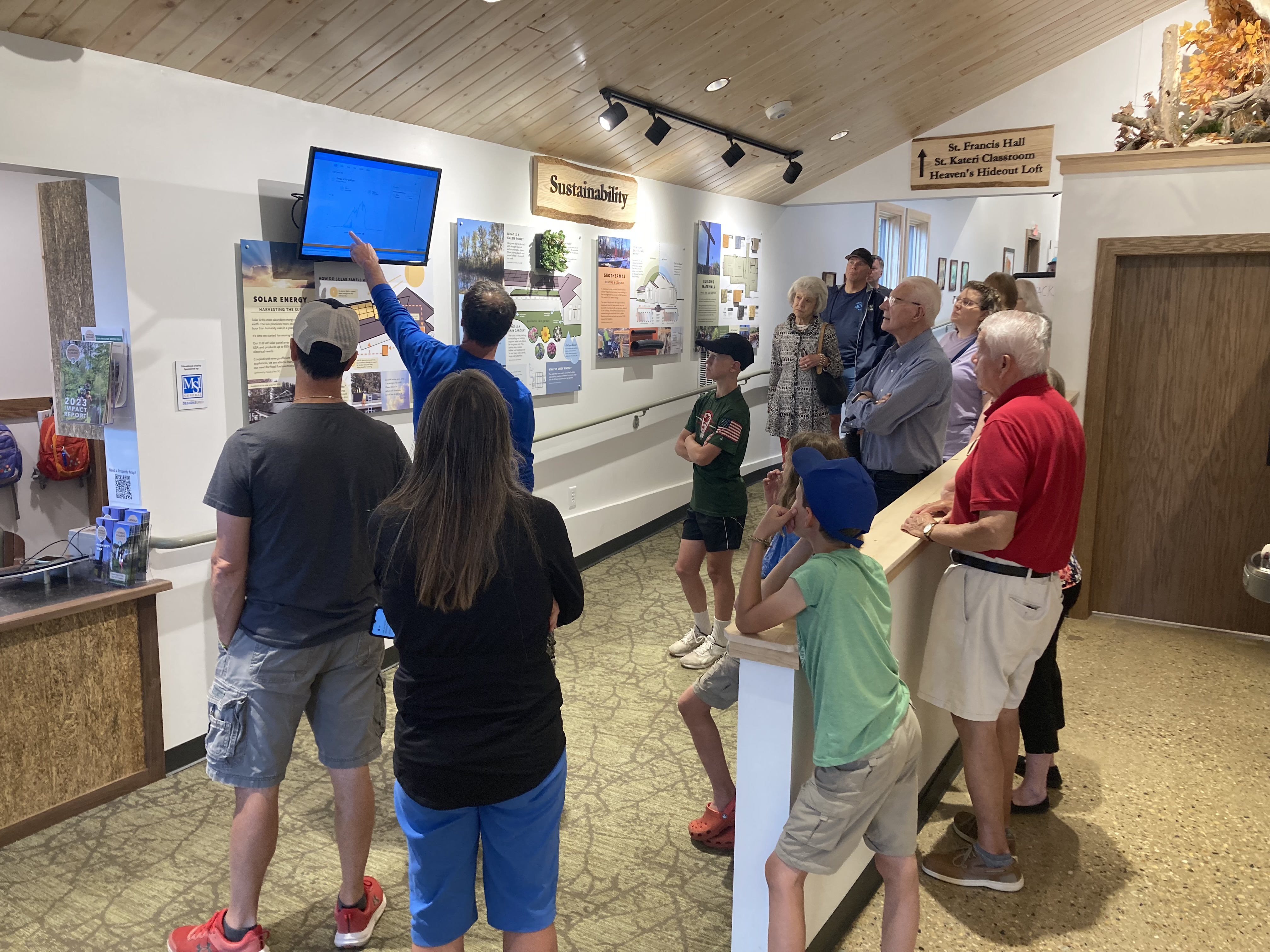 We completed our 3500 square foot building addition in June and held a weekend of open house celebrations that included a blessing of the building. Nearly 300 hundred people attended that weekend to tour the new facilities which include the Holy Family Chapel, Welcome Area, Frassati Breakout Room and Outdoor Viewing Deck. Attendees learned about our focus on sustainability within the building’s energy, water conservation and building materials. They also learned the rich history of the statuary, stained glass and paintings that reside in our Chapel. Thanks to Father Michael Joseph for doing our building blessing and Andy Gilicinski of Charism Photography, LLC for his photography. More about our building addition grand opening and blessing can be found in the Catholic Herald Article HERE