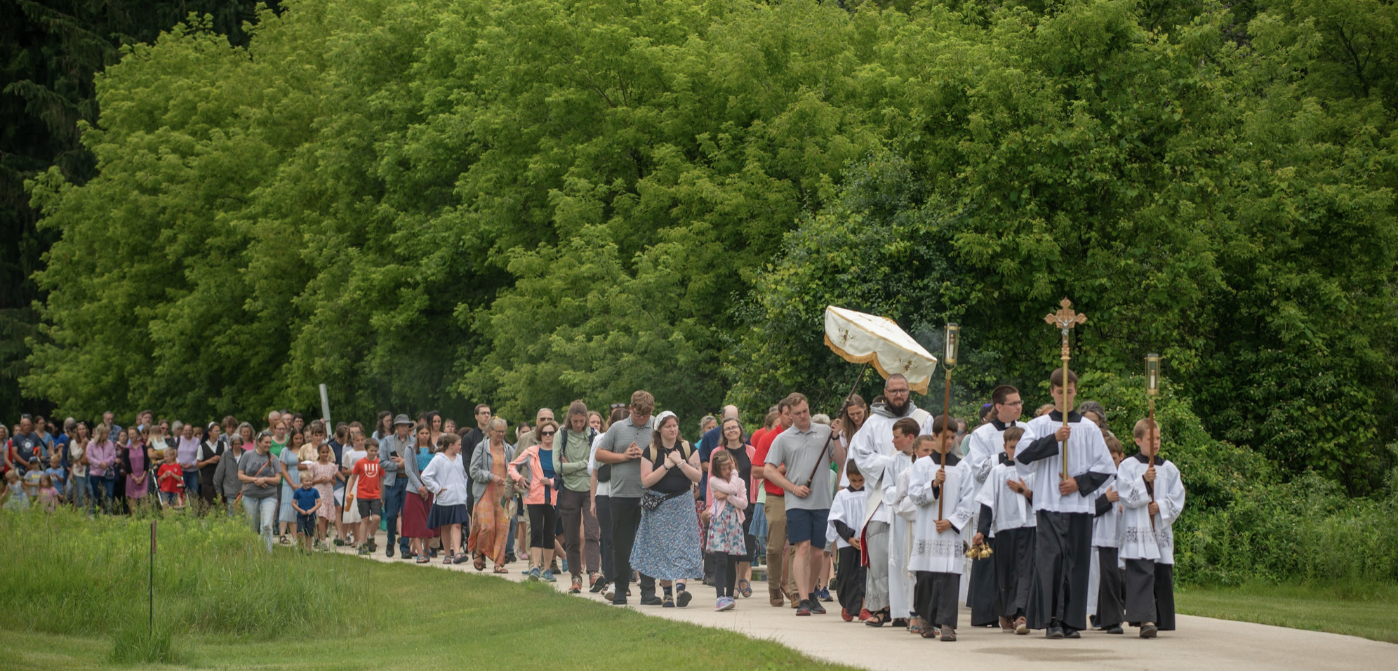 It was truly an honor to have the CEC as a stop in the National Eucharistic Pilgrimage. Prior to their stop at Holy Hill, the Eucharistic van and perpetual pilgrims arrived at the CEC shortly after noon. Over 200 faithful pilgrims awaited Jesus’ arrival. We began with adoration in our new Holy Family Chapel followed by a procession through the beautiful prairie lined road that meanders its way through the CEC property. This procession ended at our amphitheater where we enjoyed a Holy Hour of Adoration accompanied by the singing of the faithful but also that of the birds! Adoration was followed by benediction and procession back to the main CEC building saying the Divine Mercy Chaplet.