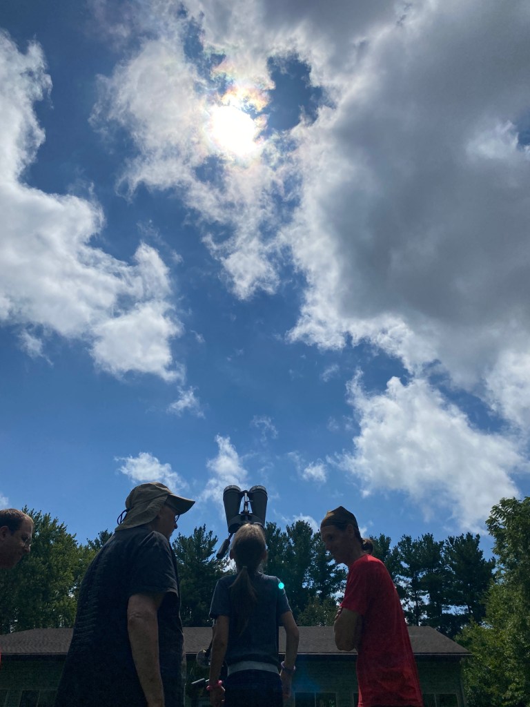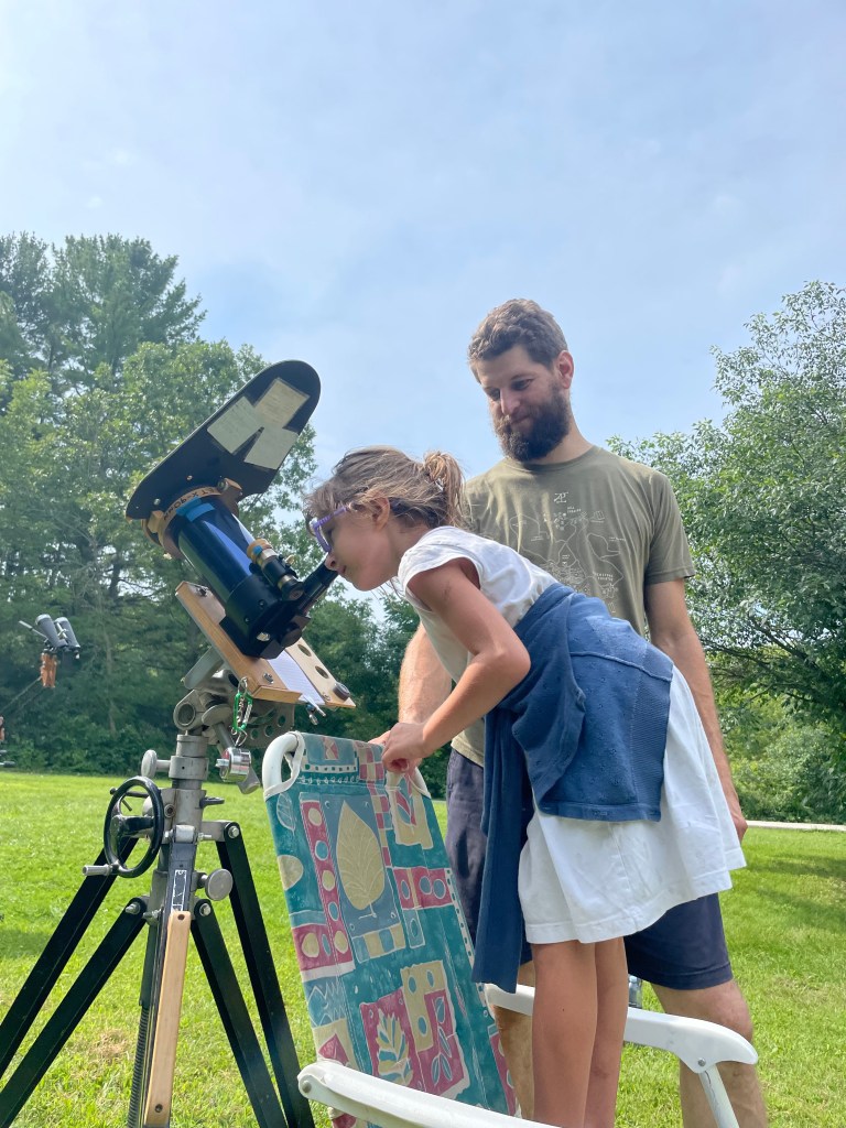 The afternoon provided some great free time with lots of activities to choose from. Families took advantage of the nice weather and went fishing in the pond, canoeing down the Rubicon River, and hiking on the trails. Tim Burrus and Al Steinberg, two volunteer astronomers, came out and set up solar scopes- special telescopes with protective lenses, so campers could safely gaze at the sun and even see some sunspots!