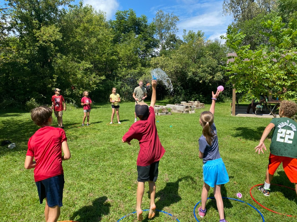 By the pond pavilion, Dominic, our newest educator, ran some crazy and wacky games that included ax throwing, crate pulling, and lots of water balloons! Suffice to say, there was plenty of laughter to be heard!