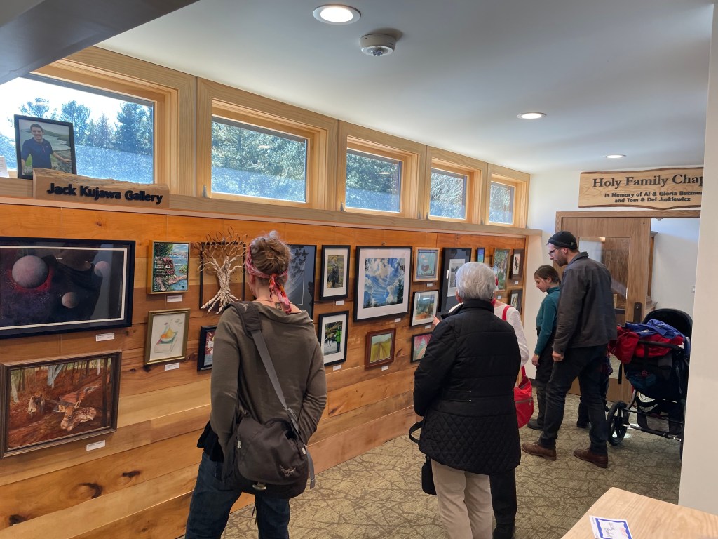 You might be wondering why, as a Catholic nature center, we are hosting an art show, but after a brisk springtime walk around the property you’ll notice there is a common thread tying together the works of art inside and our property outside.