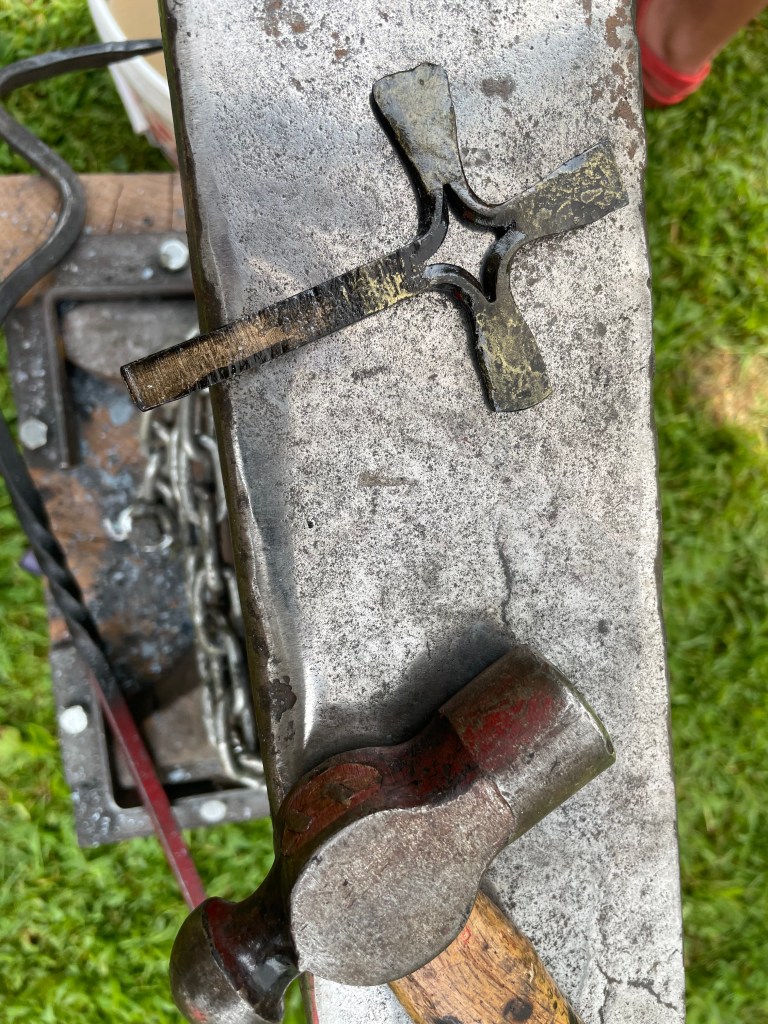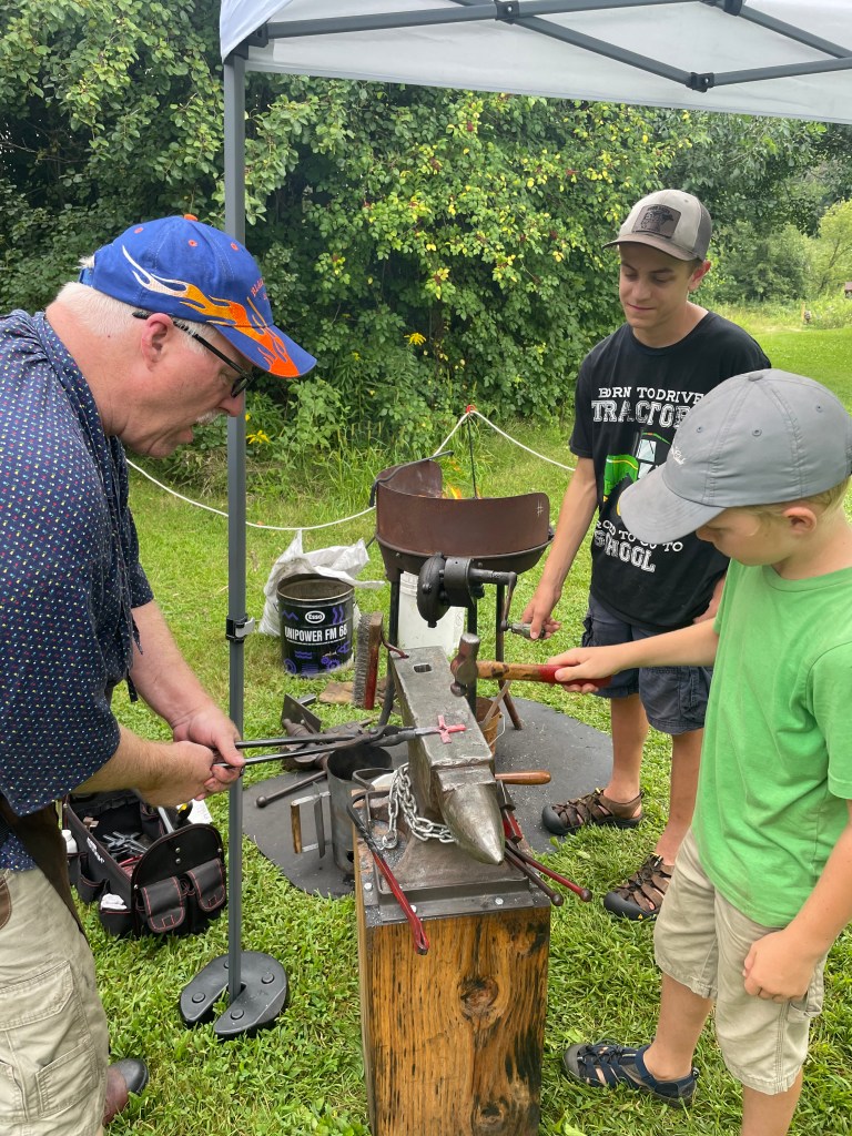 The next morning provided time for visits to the farm animals and a family rosary. Fr. Jacob Strand gave a catechetical talk and kids had the opportunity to play large group games. Throughout the morning there was an opportunity for families to drop by the blacksmith to learn the art of forging and shaping metal. Tim Burrus and Al Steinberg, two volunteer astronomers, came out and set up solar scopes- special telescopes with protective lenses, so campers could safely gaze at the sun and even see some sunspots!
