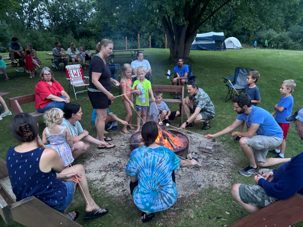 The annual Campout at the CEC was an incredible weekend filled with lots of faith, family, fun, and friends! This year’s campout began with the Mass of the Assumption, celebrated by Fr. Andrew Linn. After Mass and dinner, campers moved to our campfire where Andre Lesperance led us in praise and worship music while many marshmallows were roasted and smiles were shared!