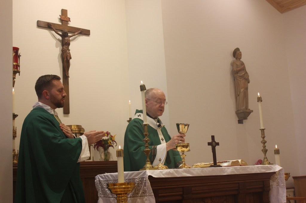 We were honored to have his Archbishop Jeffrey Grob say Mass at the CEC’s Holy Family Chapel on Saturday, October 11th 2025. It was a packed house with a video broadcast into our St. Francis Hall. We were also blest to have our Chaplain Fr. John concelebrate for this historic occasion.